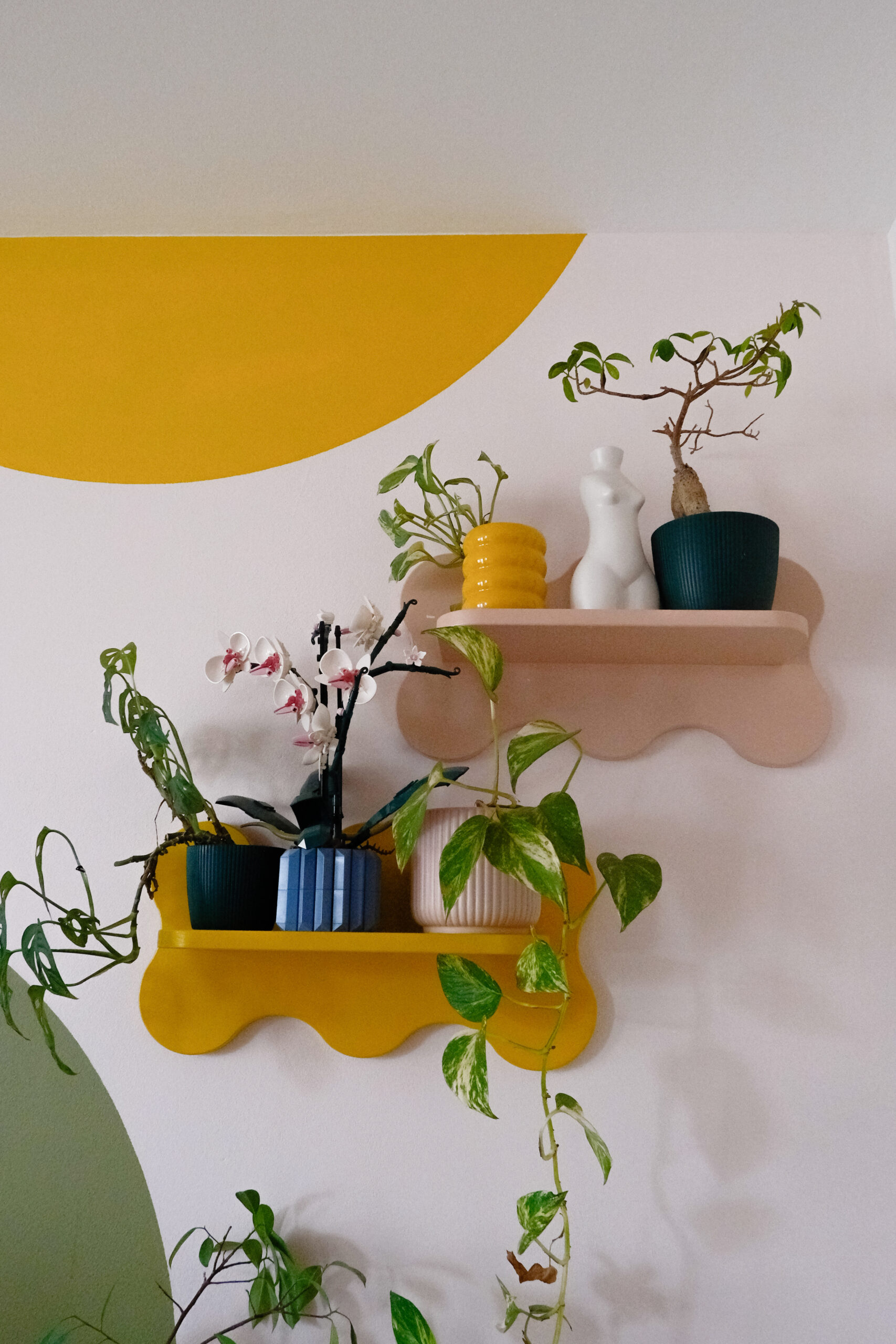 Półka wisząca WAVE  To manifest przeciwko wszechobecnego beżu i szarości. Jej organiczny, falisty kształt i nasycony kolor sprawiają, że ściana przestaje być tylko tłem, a staje się główną bohaterką aranżacji. 💜